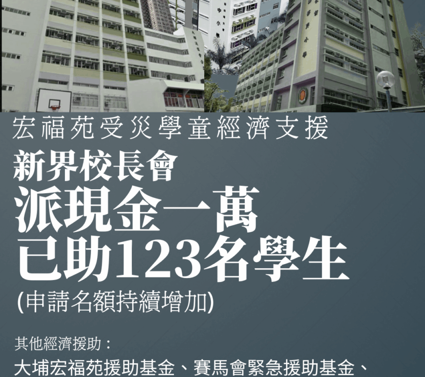 宏福苑五級火|受災學童支援 新界校長會派現金一萬 已助123名學生